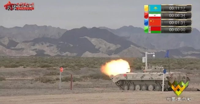 本次比賽,參賽隊(duì)需在4.3公里的賽道上通過11個(gè)障礙,并在三圈的比賽中分別射擊三種不同目標(biāo)。中國三個(gè)車組在射擊環(huán)節(jié)中彈無虛發(fā),27個(gè)目標(biāo)全部命中,是本日比賽射擊環(huán)節(jié)唯一全中的參賽隊(duì)。