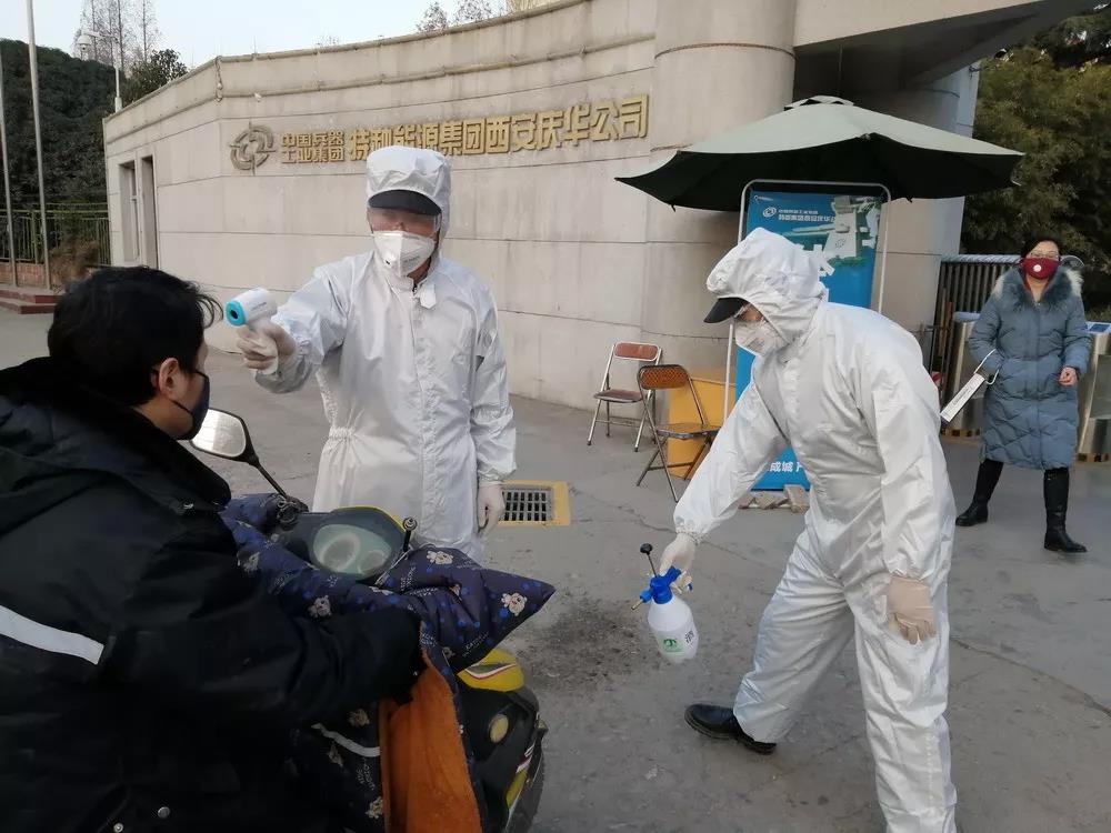 一機(jī)集團(tuán)對出入人員進(jìn)行體溫檢測;對各辦公場所、生產(chǎn)現(xiàn)場均利用消毒液進(jìn)行消毒。同時積極開展測溫儀、體溫計(jì)、消毒液、紫外線消毒燈、防護(hù)口罩等物資籌備,做好假期后生產(chǎn)啟動準(zhǔn)備。