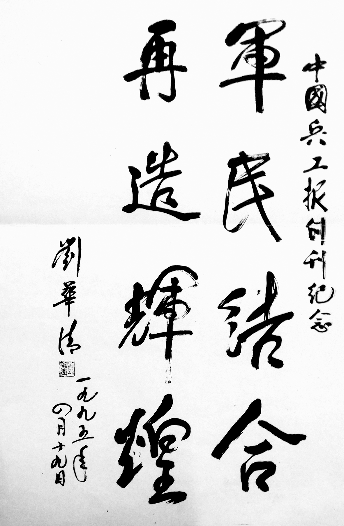 (下圖為劉華清的題詞:軍民結(jié)合,再造輝煌。)