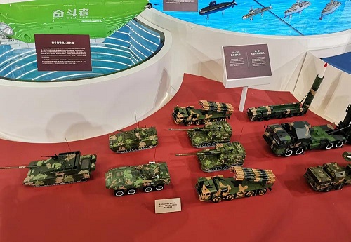 ▲我國自主研制的主戰(zhàn)坦克、輪式步兵戰(zhàn)車和遠(yuǎn)程火箭炮等陸軍主戰(zhàn)裝備