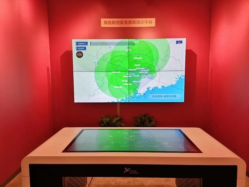 ▲“綜合防空反無系統(tǒng)演示平臺(tái)”獨(dú)立展區(qū)