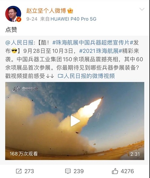 人民日報、新華社、中國日報、共青團(tuán)中央、國資小新、騰訊軍事、鳳凰軍事、新浪軍事等新媒體發(fā)布的集團(tuán)公司航展宣傳片等視頻作品燃爆全網(wǎng),閱讀量突破三千萬人次,得到外交部發(fā)言人趙立堅轉(zhuǎn)載點(diǎn)贊。集團(tuán)公司微信、微博、抖音號、微信視頻號等新媒體宣傳片播放閱讀量超過400萬人次。同時,央視新聞、新華社、中國之聲、央視軍事、央視新媒體、解放軍報、共青團(tuán)中央、國資小新、環(huán)球時報等多家媒體對集團(tuán)公司靜、動態(tài)展區(qū)進(jìn)行現(xiàn)場直播,在電視端、客戶端、微信視頻號、微博、B站、快手、抖音等平臺受到高度關(guān)注。著名軍事專家杜文龍、央視主持人顧國寧、央廣中國之聲主持人王藝等直播兵器館、動態(tài)表演區(qū)裝備。 《參考消息》、新華網(wǎng)、央廣網(wǎng)、中國日報、科技日報、解放軍報、人民網(wǎng)、中國新聞網(wǎng)、中國青年網(wǎng)、中國網(wǎng)、中工網(wǎng)、央視網(wǎng)、環(huán)球網(wǎng)、騰訊網(wǎng)、新浪網(wǎng)、鳳凰網(wǎng)、搜狐網(wǎng)、網(wǎng)易網(wǎng)、今日頭條等中央主流媒體和知名網(wǎng)絡(luò)媒體以及南方日報、廣東電視臺、北京電視臺、新京報、珠海傳媒集團(tuán)、深圳衛(wèi)視等省市媒體對集團(tuán)公司參展情況進(jìn)行了圖片、文字、視頻報道。 航展期間,備受關(guān)注的中國兵器館,參觀的觀眾絡(luò)繹不絕。 |