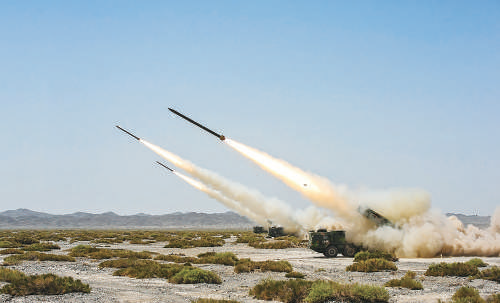 ▲某集團軍炮兵旅遠火營使用遠程多管火箭炮進行實戰(zhàn)化訓(xùn)練