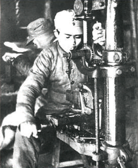 “炮彈大王”甄榮典,是八路軍黃崖洞兵工廠的一名水車動力車工,從事炮彈生產(chǎn)最吃力的工種,別的工人都因體力消耗支撐不住,不到兩三個月就需要輪換一次,但甄榮典深知前線的需要,堅持在水力輪帶旁一干就是5年。別人一天車五六十發(fā)炮彈,他能車100發(fā)以上;別人車到100發(fā),他又增加到150發(fā),最終創(chuàng)造了日車炮彈外圓480發(fā)的驚人紀錄。