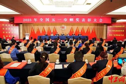 3月24日,2023年全國五一巾幗獎表彰大會在北京召開。圖為表彰大會現(xiàn)場。中工網(wǎng)記者 王鑫 攝